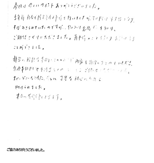 スピーディーな対応、優しい丁寧な対応に幾度も