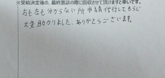 長い間激務をされた方でした。現状を見ると2級相当とお見受けしましたが、診断書は軽めに記載されておりました。上申書や福祉サービスの利用状況など申し立て、3級の5年遡及で認定されました。お母さまと最終面談でお話ししましたが、ご本人はもちろんのこと、ご家族にとっても、障害年金は大きな安心をもたらします。必要な方に年金を受給して頂けるようこれからも頑張ろうと思いました。引き続きかかりつけ社労士としてお付き合いすることになりました。